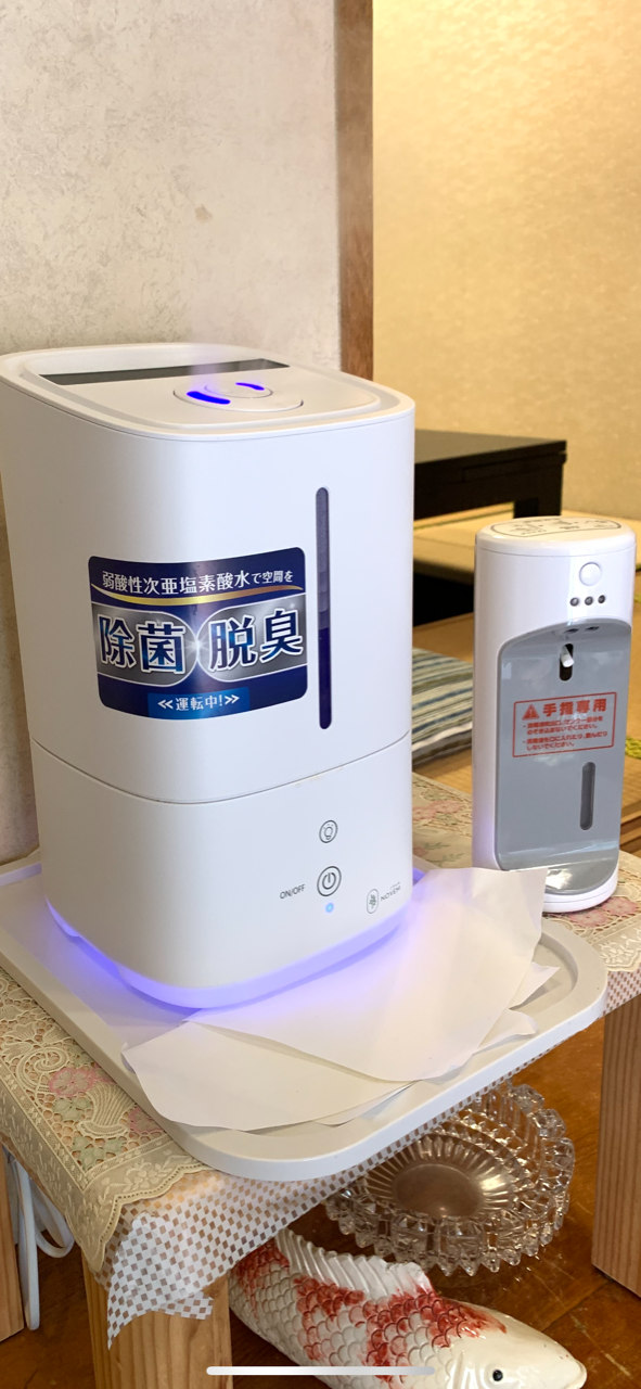 店内 弱酸性次亜塩素酸水噴霧器による空間除菌及び自動 ハンド除菌スプレー完備
